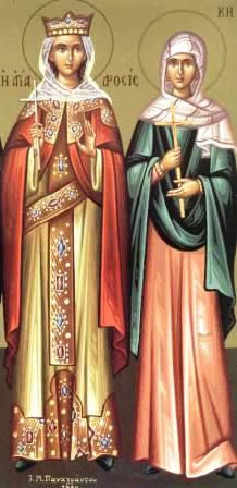Τῷ φωτί τῆς χάριτος, καταυγασθεῖσα, εὐσεβῶς ἠγώνισαι, ὑπέρ τῆς δόξης τοῦ Χριστοῦ, Δροσίς Μαρτύρων συνόμιλε, μεθ’ ὧν δυσώπει, ὑπέρ τῶν ψυχῶν ἡμῶν.