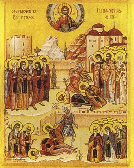 ἱ Ἅγιοι Ὁσιομάρτυρες τῆς μονῆς Νταού Πεντέλης μαρτύρησαν περί τά τέλη τοῦ 17ου αἰῶνα μ.Χ., κατά τήν ἐποχή πού Ἀλγερινοί πειρατές λεηλατοῦσαν τά παράλια μέρη. Κάποιος ἀπό τούς ὑπηρέτες τῆς μονῆς, ὁ ὁποῖος μισοῦσε τούς μοναχούς, συνεννοήθηκε μέ τούς πειρατές καί τούς ἔβαλε στή μονή τήν ὥρα πού οἱ Πατέρες ἑόρταζαν τήν Ἀνάσταση. Οἱ πειρατές κατέσφαξαν τούς Πατέρες, λεηλάτησαν τή μονή καί ἔφυγαν. Σώθηκε μόνο ἕνας ἱερέας τῆς μονῆς μέ τόν ὑποτακτικό του, πού εἶχε μεταβεῖ στό μετόχι Γεροτσακούλι, γιά νά τελέσει ἐκεῖ τήν ἀκολουθία τῆς Ἀναστάσεως. Ὅταν ἐπέστρεψε, βρῆκε τήν μονή κατεστραμμένη καί σφαγμένους ὅλους τούς Πατέρες. Ὁ ἱερέας ἀφοῦ περισυνέλεξε τά τίμια λείψανα, τά ἐνταφίασε μέ εὐλάβεια καί τιμή.