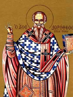 Ὡς δώρημα τέλειον, ἐκ τοῦ τῶν φώτων Πατρός, σοφίας τήν ἔλλαμψιν, ὡς Ἱεράρχης σοφός, ἐδέξω Δωρόθεε· ὅθεν καί πλεονάσας, τόν σόν τάλαντον μάκαρ, ἤθλησας ὑπέρ φύσιν, βαθυτάτῳ ἐν γήρᾳ, πρεσβεύων Ἱερομάρτυς, ὑπέρ τῶν ψυχῶν ἡμῶν.