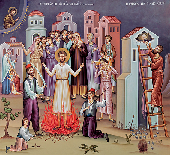Ὡς ἀστήρ νεόφωτος, λαμπρῶς ἀθλήσας, ἐν ὑστέροις ἔτεσι, τῇ Ἐκκλησίᾳ τοῦ Χριστοῦ, ἐδείχθης Μάρτυς Νικόλαε· διό γεραίρει τήν θείαν σου ἄθλησιν.
