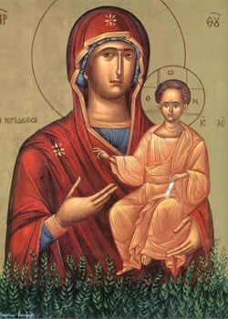 Ὤφθης τῶν Κυθήρων καταφυγή, ἐξαιρέτῳ τρόπῳ, ἀναβλύζουσα ἐν αὐτοῖς, ἐκ τῆς σῆς Εἰκόνος, προνοίας σου τά ῥεῖθρα, ὦ Κεχαριτωμένη· διό ὑμνοῦμέν σε.