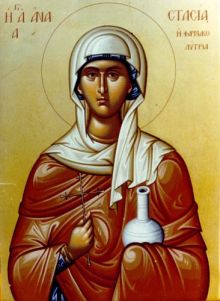 Τῇ ΚΒ' τοῦ αὐτοῦ μηνός (Δεκεμβρίου), Μνήμη τῆς Ἁγίας μεγαλομάρτυρος Ἀναστασίας, τῆς Φαρμακολυτρίας.