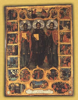 Τῶν Ὁσίων σύμμορφοι, καί τῶν Μαρτύρων εἰκόνες, ἀληθῶς ἐδείχθητε, Ὁσιομάρτυρες θεῖοι· τούτων γάρ, τάς ἀριστείας ὡς ὑπελθόντες, στέφανον, διπλοῦν εἰλήφατε ἐκ Κυρίου, Εὐθύμιε θεοφόρε, σύν Ἰγνατίῳ καί Ἀκακίῳ ὁμοῦ.