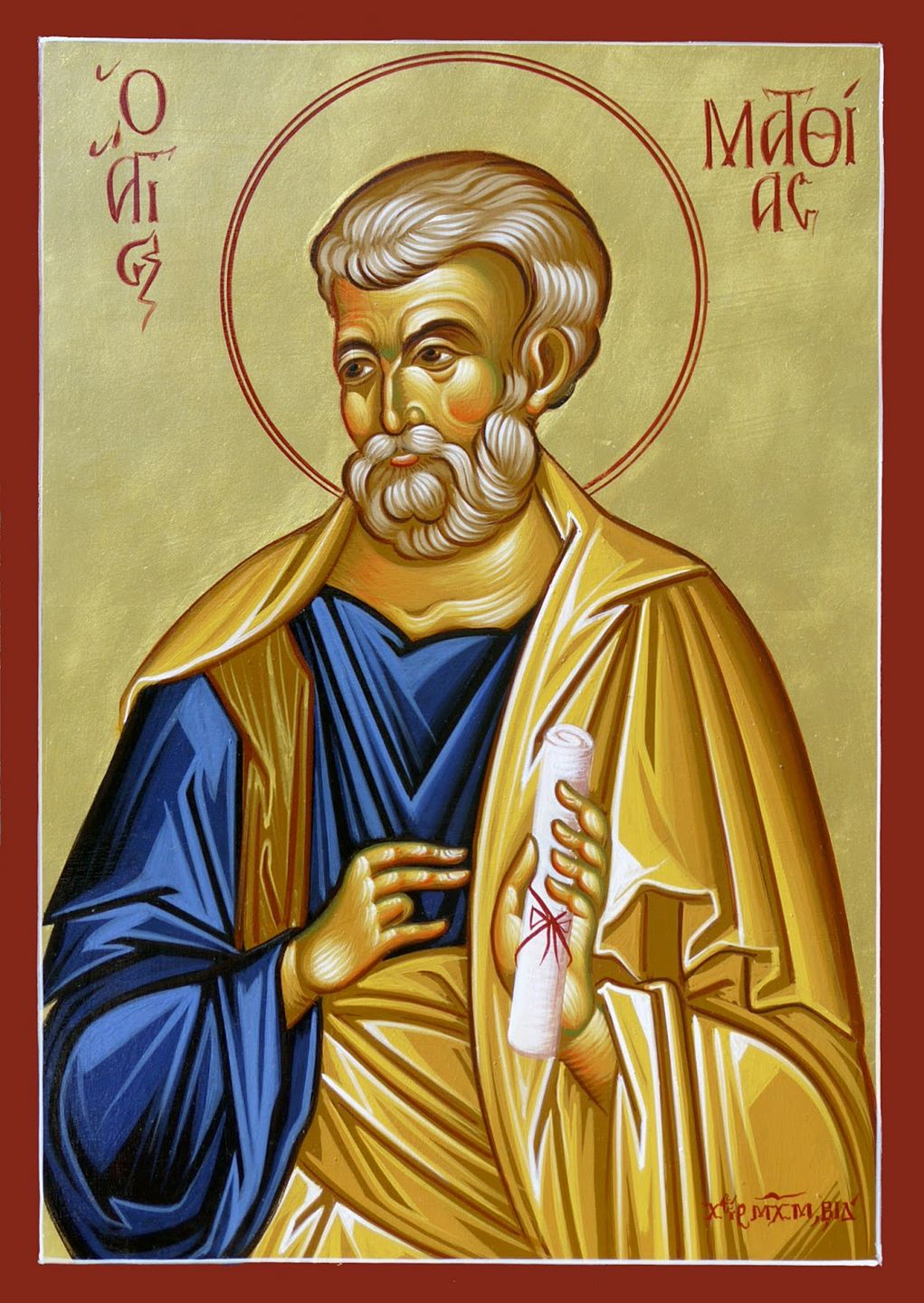 Τόν τῆς εὐσεβείας ὑφηγητήν, καί τῆς Δωδεκάδος, τό συμπλήρωμα τῆς κλητῆς, ὕμνοις σε τιμῶμεν, Ἀπόστολε Ματθία, ὡς ἄριστον μεσίτην, ἠμῶν πρός Κύριον.