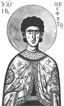Νέος ὢν τῷ σώματι κομιδῇ, τόν ἀρχαῖον ὄφιν, ἐτροπώσω μαρτυρικῶς· ὅθεν ἐδοξάσθης, τῇ θείᾳ χορηγίᾳ, Νεόφυτε τρισμάκαρ, πιστῶν ἀντίληψις.
