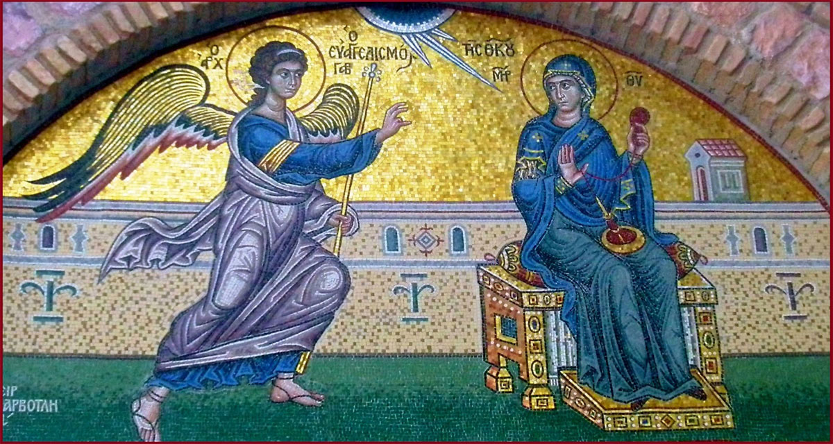 Κατὰ τὶς ἡμέρες τῆς δημιουργίας τοῦ κόσμου, ὅταν ὁ Θεὸς ἐξέφερε τὸν ζωντανὸ καὶ παντοδύναμο λόγο Του «γενηθήτω», ὁ λόγος τοῦ Δημιουργοῦ παρήγαγε ἐντὸς τοῦ κόσμου τὰ ὄντα. Ἀλλὰ τὴν ἡμέρα ἐκείνη, ἡ ὁποία δὲν ἔχει τὴν ὅμοιά της ἀπὸ τῆς ὑπάρξεως τοῦ κόσμου, ὅταν ἡ θεία Μαρία προσέφερε τὸ σεμνὸ καὶ ὑπάκουο «Γένοιτο», ὁ λόγος τοῦ δημιουργήματος κατέβασε στὸν κόσμο τὸν Δημιουργό. Ἐδῶ ὁ Θεὸς καὶ πάλι προσφέρει τὸν λόγο Του: «Θὰ συλλάβεις, θὰ γεννήσεις υἱὸ καὶ θὰ τὸν ὀνομάσεις Ἰησοῦ. Αὐτὸς θὰ γίνει μέγας καὶ θὰ ὀνομαστεῖ Υἱὸς τοῦ Ὑψίστου. Σὲ αὐτὸν θὰ δώσει ὁ Κύριος ὁ Θεὸς τὸν θρόνο τοῦ Δαυΐδ, τοῦ προπάτορά Του. Θὰ βασιλεύσει γιὰ πάντα στοὺς ἀπογόνους τοῦ Ἰακὼβ καὶ ἡ βασιλεία Του δὲν θὰ ἔχει τέλος».