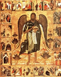 Προφῆτα Θεοῦ, καί Πρόδρομε τῆς χάριτος, τήν Κάραν τήν σήν, ὡς ῥόδον ἱερώτατον, ἐκ τῆς γῆς εὑράμενοι, τάς ἰάσεις πάντοτε λαμβάνομεν, καί γάρ πάλιν ὡς πρότερον, τῷ κόσμῳ κηρύττεις τήν μετάνοιαν.