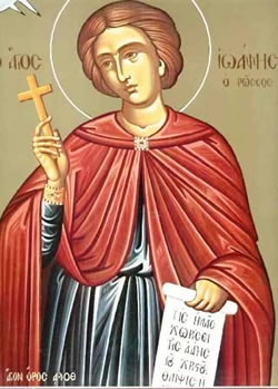 Θείας πίστεως, τό φῶς κατέχων, πικράν ἤνεγκας, αἰχμαλωσίαν, Ἰωάννη καί ὁσίως ἐβίωσας· ὅθεν τό θεῖόν σου λείψανον Ἅγιε, θαυματουργίας πηγάζει ἐν Πνεύματι· ᾧ προστρέχοντες, ὑμνοῦμεν τόν σέ δοξάσαντα, τιμῶντες τά σεπτά σου προτερήματα.
