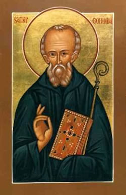 Ὅσιος Κολούμπα ἐγεννήθηκε στήν πόλη Γκάρταν τῆς Δονεγάλης στήν Ἰρλανδία στίς 7 Δεκεμβρίου τοῦ 521 μ.Χ. καί καταγόταν ἀπό βασιλική οἰκογένεια. Ἐμαθήτευσε πλησίον διακεκριμένων διδασκάλων καί ἐνωρίς ἀπεφάσισε νά ἀκολουθήσει τό μοναχικό βίο. Μετά τήν εἰς πρεσβύτερον χειροτονία του ἐργάσθηκε ὡς ἱεραπόστολος στήν Ἰρλανδία καί ἵδρυσε μοναστήρια στίς περιοχές Ντέρρυ καί Ντάροου.