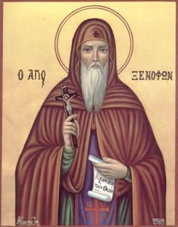 Ὡς γενεά εὐλογητή τῷ Κυρίῳ, τῆς οὐρανίου ἠξιώθησαν δόξης, ἀσκητικῶς δοξάσαντες Χριστόν ἐπί τῆς γῆς, Ξενοφῶν ὁ Ὅσιος, καί ἡ τούτου συμβία, σύν τοῖς ἀριστεύσασιν, ἱεροῖς αὐτῶν τέκνοις· οὓς εὐφημοῦντες εἴπωμεν φαιδρῶς· χαίροις Ὁσίων, χορεία τετράριθμε.