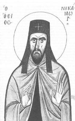 Ὅσιος Νικάνωρ ἦταν ἀπό τή Θεσσαλονίκη καί ἔζησε τόν 14ο αἰῶνα. Οἱ γονεῖς του ὀνομάζονταν Ἰωάννης καί Μαρία. Ἦταν πολύ πλούσιοι ἀλλά καί πολύ πνευματικοί ἄνθρωποι. Ἀπόκτησαν μόνο ἕνα παιδί πού τό ὀνόμασαν Νικόλαο, καί ἀπό τήν ἀρχή προσπάθησαν νά τό ἀναθρέψουν σύμφωνα μέ τά διδάγματα τοῦ Εὐαγγελίου. Ἀλλά ἐνῷ ὁ Νικόλαος ἦταν 20 χρονῶν, πεθαίνει ὁ πατέρας του καί μετά ἀπό λίγα χρόνια καί ἡ μητέρα του. Τότε αὐτός, διαμοίρασε ὅλη του τή μεγάλη κληρονομιά στούς φτωχούς καί ἔγινε μοναχός μέ τό ὄνομα Νικάνωρ.