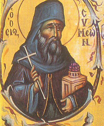 Ὅσιος Συμεών, ὁ καί «ἀνυπόδητος καί μονοχίτων» ἀποκαλούμενος, γεννήθηκε περί τό ἔτος 1500 στό χωριό Βαθύρρεμα Λαρίσης, τοῦ ὁποίου σήμερα σώζονται ἐλάχιστα ἐρείπια.
