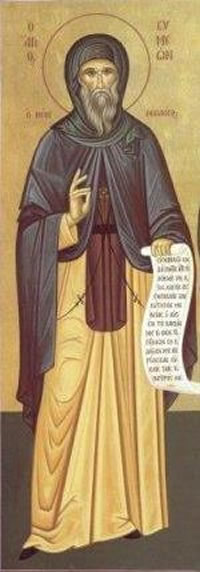 Θείαν ἔλλαμψιν, Συμεών Πάτερ, εἰσδεξάμενος, ἐν τῇ ψυχῇ σου, φωστήρ ἐν κόσμῳ ἐδείχθης λαμπρότατος, διασκεδάζων αὐτοῦ τήν σκοτόμαιναν, καί πάντας πείθων ζητεῖν, ἣν ἀπώλεσαν, χάριν Πνεύματος. Αὐτό ἐκτενῶς ἱκέτευε, δωρήσασθαι ἡμῖν τό μέγα ἔλεος.